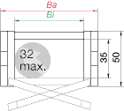 Tenha em atenção o seguinte: para além da largura exterior da calha articulada, terá de adicionar 31 mm para a largura dos dois suportes de deslize!