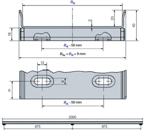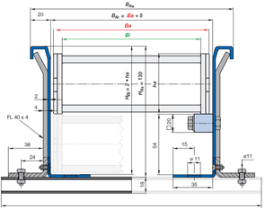 Larguras interiores disponíveis Bi: 50 a 300 mm