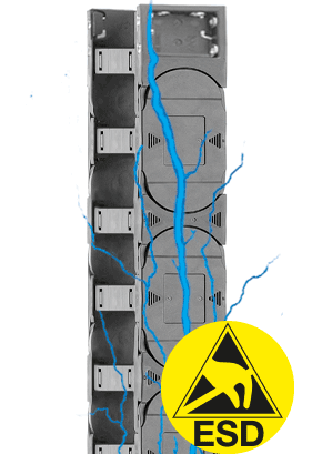 Calhas articuladas série E4.28 ESD com abertura de ambos os lados em todos os elos