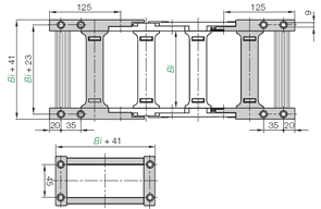 Larguras interiores Bi disponíveis: 75 a 300 mm