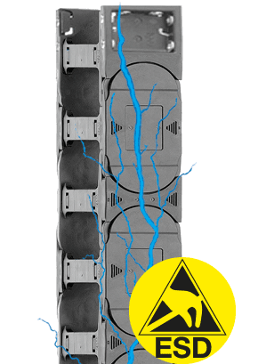 Calhas articuladas série E4.56 ESD com abertura de ambos os lados em todos os elos