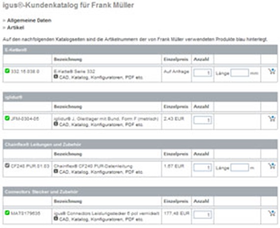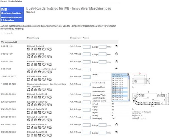 Os clientes da igus® agora têm a opção de criar um catálogo online de acordo com suas necessidades entre os mais de 80.000 produtos da linha igus®. Assim que um cliente esteja registado no sistema da igus®, qualquer funcionário da empresa pode solicitar o acesso à página na empresa. Isto é gerido pelo sistema de cliente "myigus" já em funcionamento.