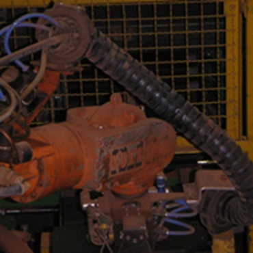 As dimensões dos robôs mais pequenos também pedem raios para movimento mais apertados nos cabos. A triflex® protege os cabos e as mangueiras graças aos raios de curvatura mínimos definidos