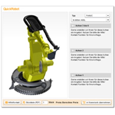 O configurador do pack igus® é uma ferramenta de configuração para sistemas de calhas articuladas para robôs. Com apenas alguns cliques, a respetiva configuração pode ser selecionada para 79 modelos de robôs.