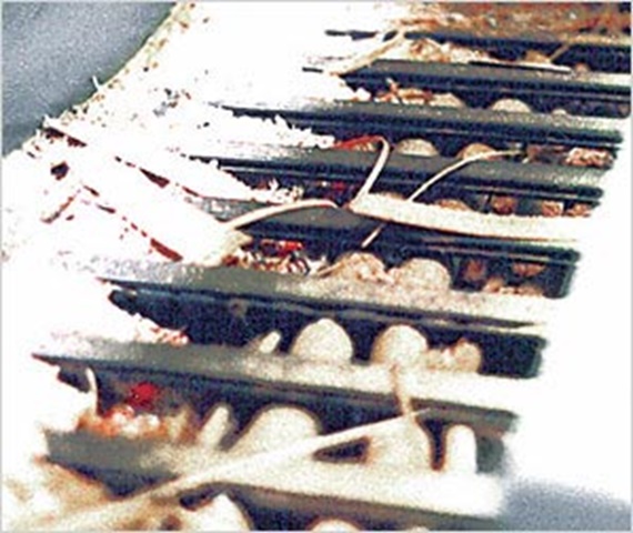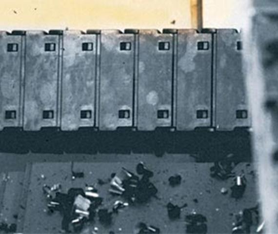 Os testes de laboratório e inúmeras referências comprovam que as calhas articuladas abertas e tapadas constituem uma proteção segura para os cabos em robots de soldadura e em máquinas-ferramenta. As partículas da solda deixam sinais visuais nas calhas, mas não alteram o material nem a sua função. As calhas tapadas resistiram aos testes com limalhas de tamanho médio a 900°C. As calhas são utilizadas mundialmente em zonas de limalhas das máquinas-ferramenta. (Tenha em atenção que o igumid G não é recomendado para o contacto direto com grandes quantidades de alumínio fundido).