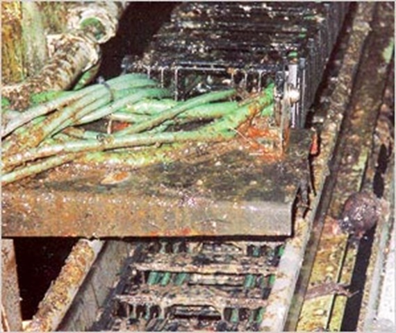 As calhas articuladas comprovaram a sua durabilidade, neste caso com serrim de madeira