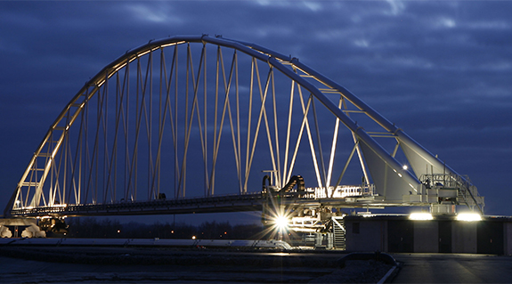 World's biggest polymer energy chain: Being many times lighter than comparable steel chains it easily moves over 100 kg of filling per meter.