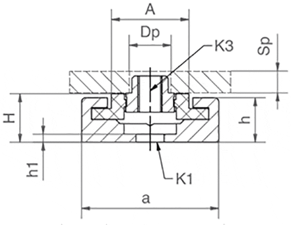 | Art. n.º | H | A | C | C1 | C2 | A2 | H2 | K2 | K3 | K4 | Sp mín. | Dp Ø mín. | Peso |