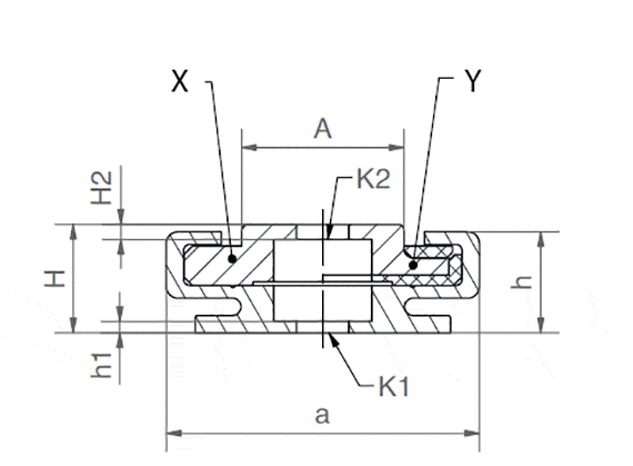 | Art. n.º | H | A | C | C1 | C2 | A2 | H2 | K2 | K3 | K4 | Sp mín. | Dp Ø mín. | Peso |