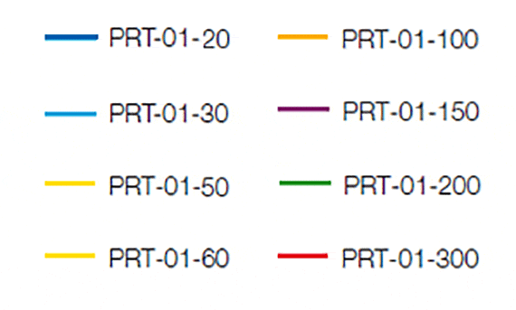 PRT-01-20: M4, mín. de 6 parafusos PRT-01-30: M4, mín. de 8 parafusos PRT-01-60: M5, mín. de 10 parafusos PRT-01-100: M5, mín. de 12 parafusos PRT-01-200: M6, mín. de 12 parafusos