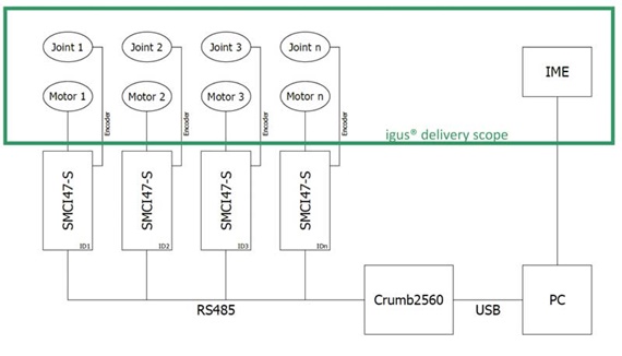 Motores de passo da igus®, correspondentes ao número de eixos do braço